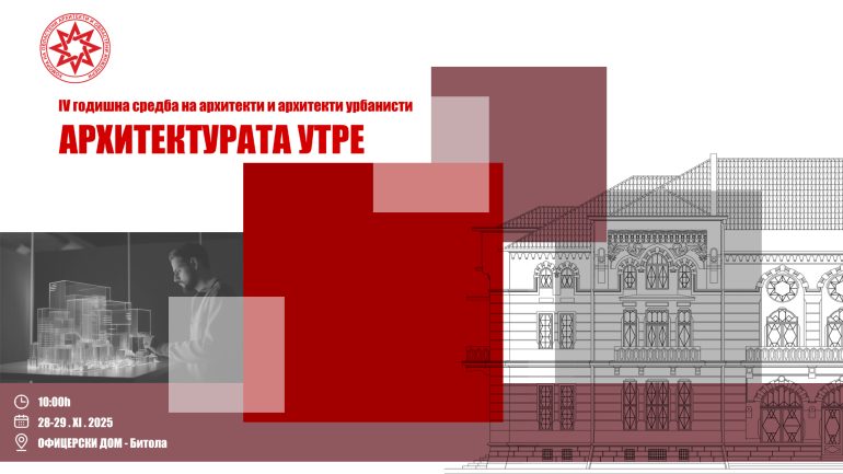 📅 Датум: 28–29 ноември 2025 година (петок и сабота) 📍 Место: Офицерски дом, Битола 🎯 Тема: Архитектурата утре Одделението на архитекти и Одделението на архитекти урбанисти при Комората на овластени архитекти и овластени инженери на Република Северна Македонија со задоволство ја најавуваат Четврта Годишна Средба на Архитекти и Архитекти Урбанисти, која оваа година ќе … Continue reading Четврта Годишна Средба на Архитекти и Архитекти Урбанисти -„Архитектурата утре“