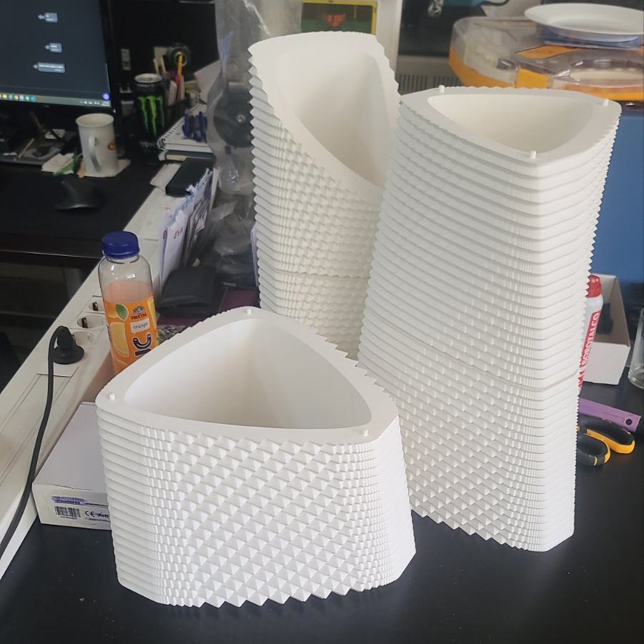 1. Интеграција на 3Д Принтање: Имплементација на процесот на 3Д принтање како примарна методологија за материјализација на моделот. Ова овозможи прецизно изведување на комплексната, органска геометрија на објектот, која е тешко остварлива со традиционални методи.