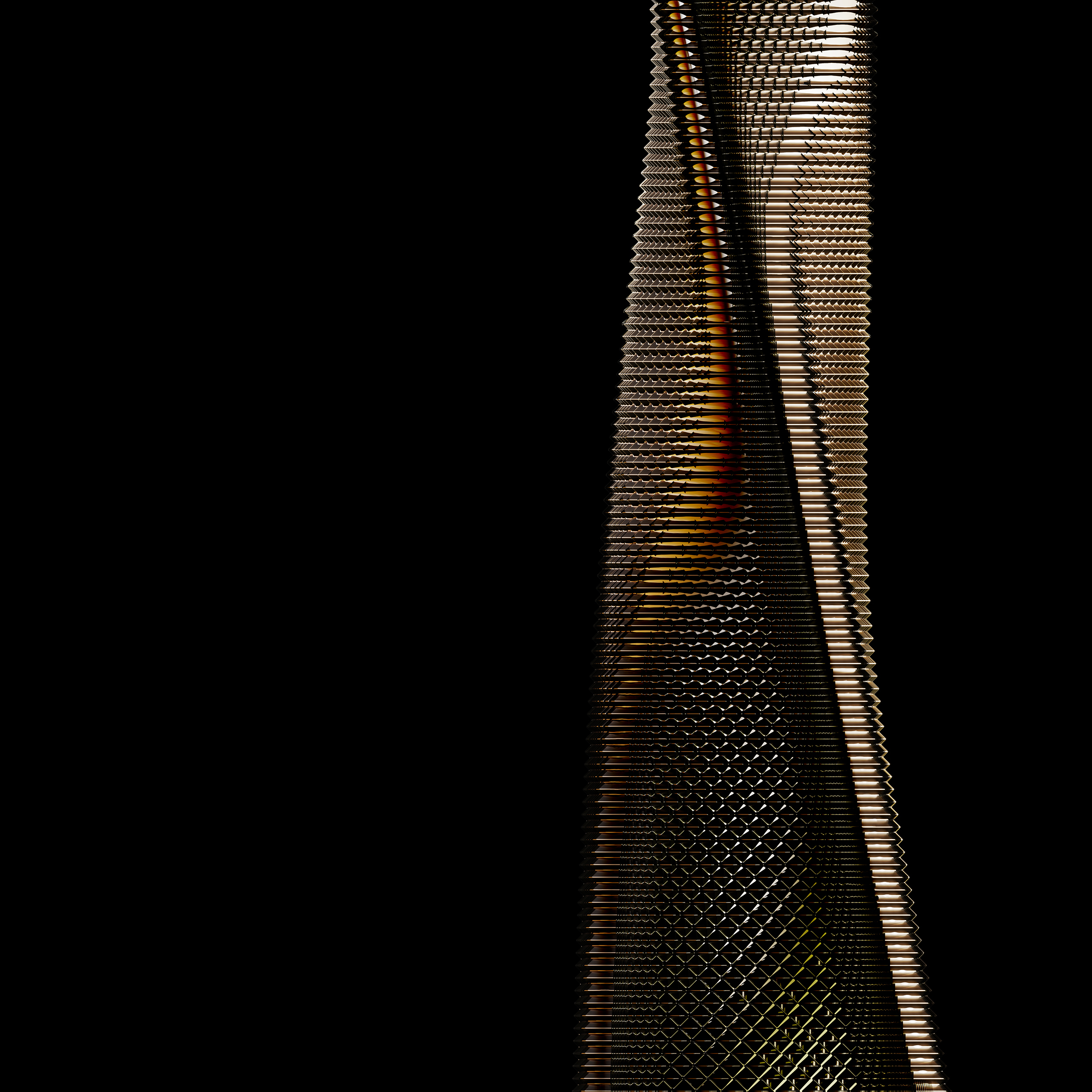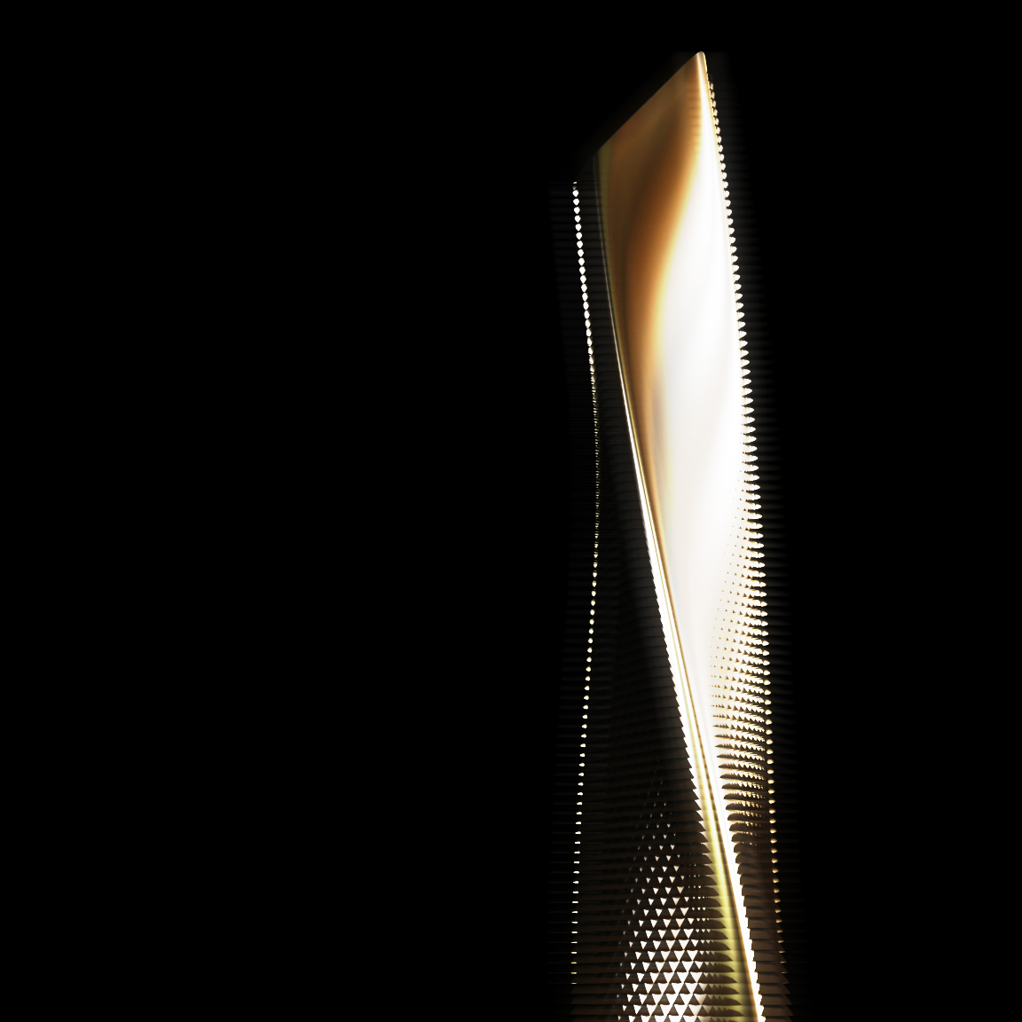 Фундаменталната форма на објектот почна да се деривира преку процес на контролирана морфогенеза (создавање форма), чија суштина беше во динамичната интеракција помеѓу фиксното централно јадро и ротирачката, триаголна обвивка.