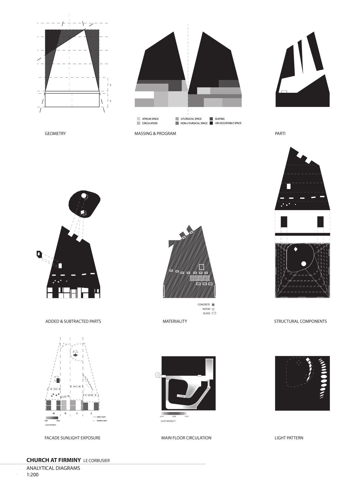 Анализата на црквата „Saint-Pierre“ како пример за доцниот архитектонски израз на авторот, каде доминираат скулптуралната форма, експресивниот бетон и внимателно контролираната природна светлина. Студијата го нагласува начинот на кој објектот комбинира духовност, геометрија и просторна драматургија, создавајќи силно симболично и атмосферско искуство.