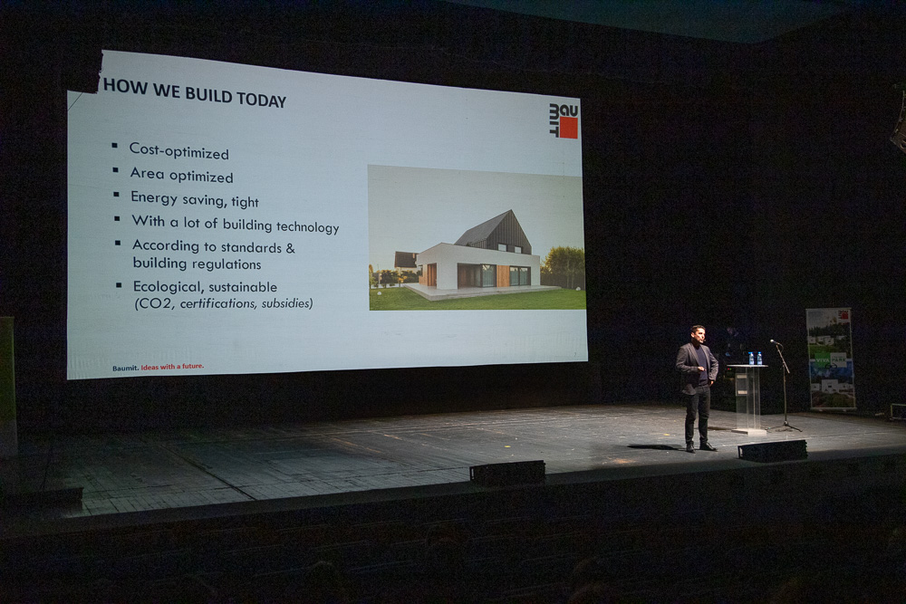 По Petter Murray следуваше Michael Haindl од компанијата Baumit која има цел да ја обединува технологијата со хуманоста, естетиката, ефикасноста. Преку проекти ги претстави нивните најнови технологии на материјали за градење засновани на направени истражувања во однос на економска и еколошка одржливост, материјалите како филозофија за здраво и одржливо живеење, како клучен дел од архитектурата.