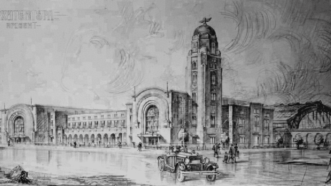 Скица од проектот за железничка станица во Скопје, 1931 (АI интензивирана и оригинал) / извор: Милан Просен
