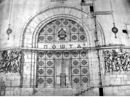 Скица од портата на предлог поштата, 1947 / извор: Милан Просен