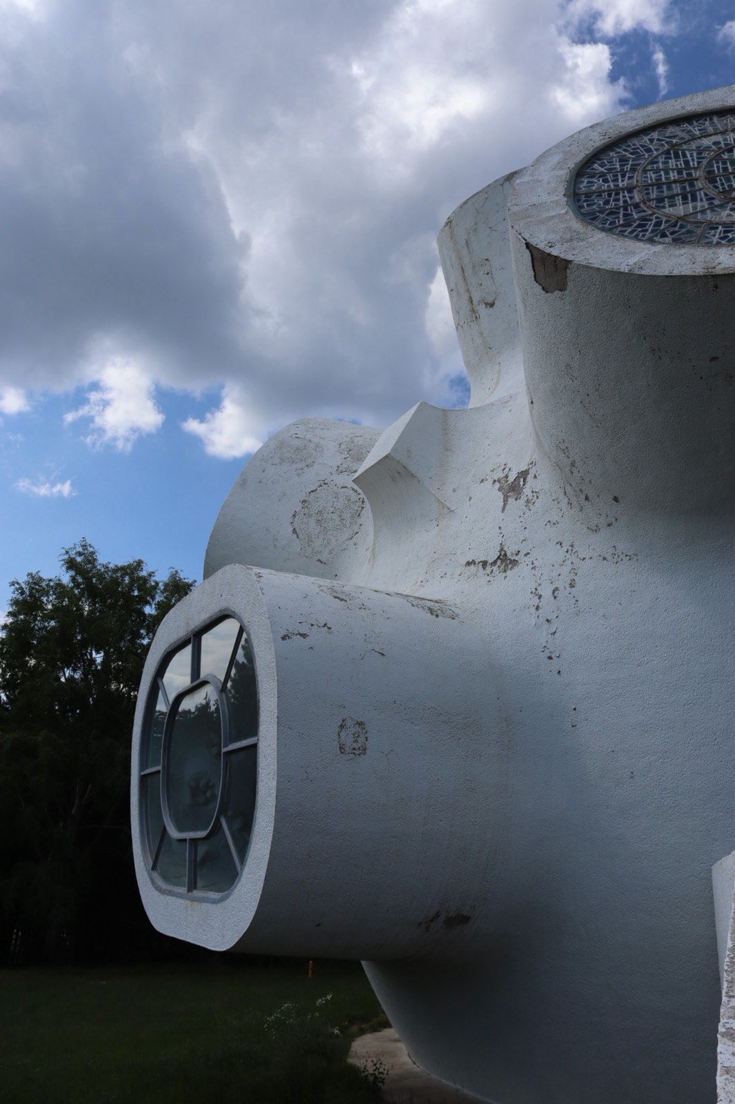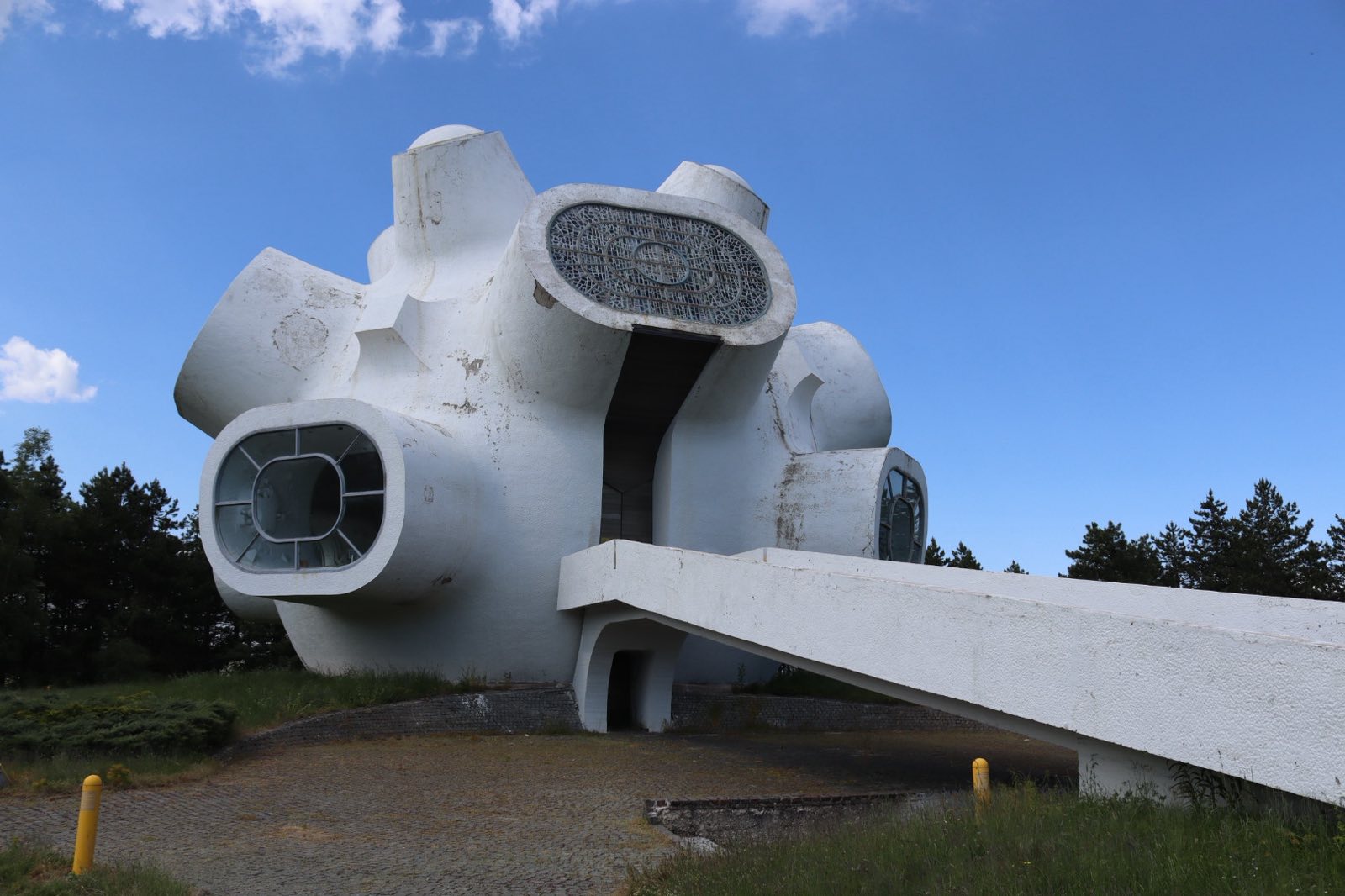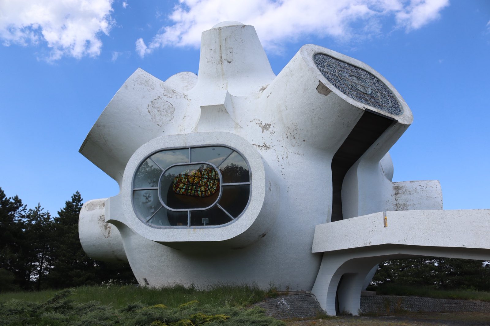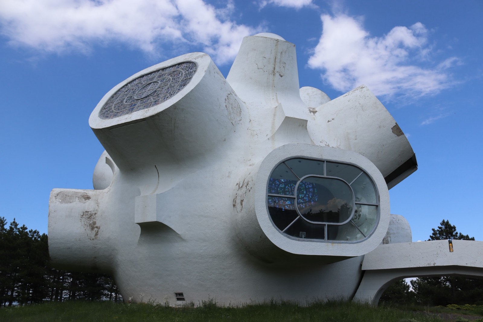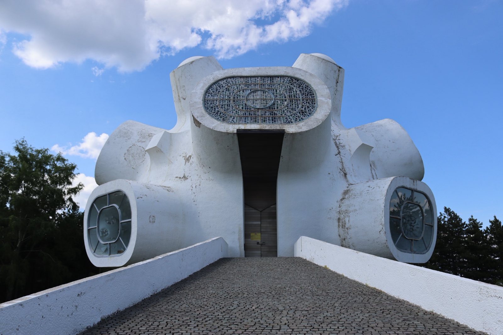 Покрај вгнездената топографија на Крушево, на висорамнина каде што историјата, митот и архитектурата се преплетуваат, се наоѓа еден од најзначајните објекти на македонскиот и југословенски модернизам – Македониумот. Овој спомен-дом, проектиран од арх. Јордан и Искра Грабул, не претставува само архитектонски куриозитет, туку е силен семиотички апарат кој артикулира историска траума, еманципаторски идеали и колективна меморија. Неговата форма, органска и симболична, ја надминува функцијата на објект и прераснува во архитектонска мисла, фрагмент од еден повисок културен код.