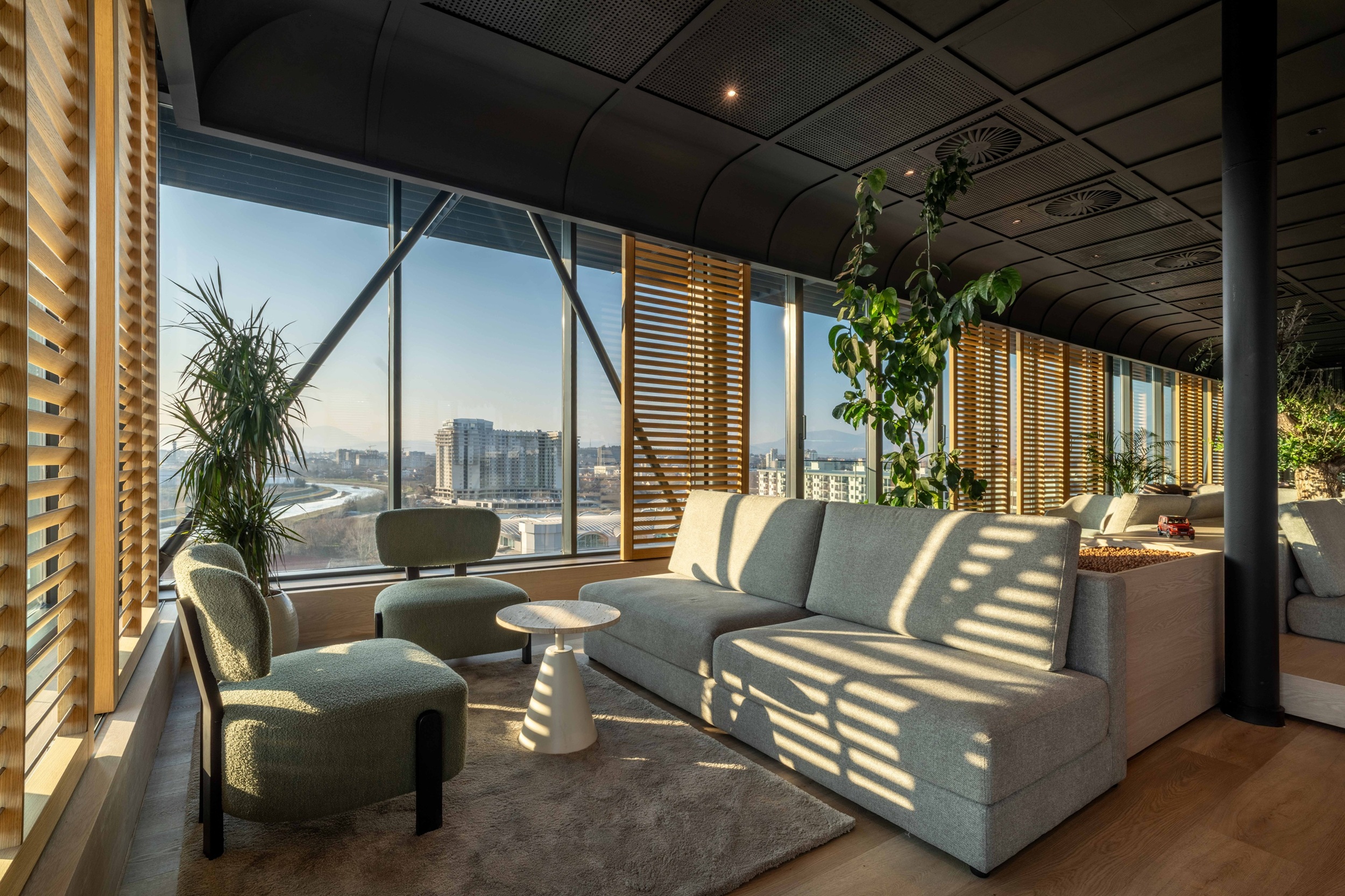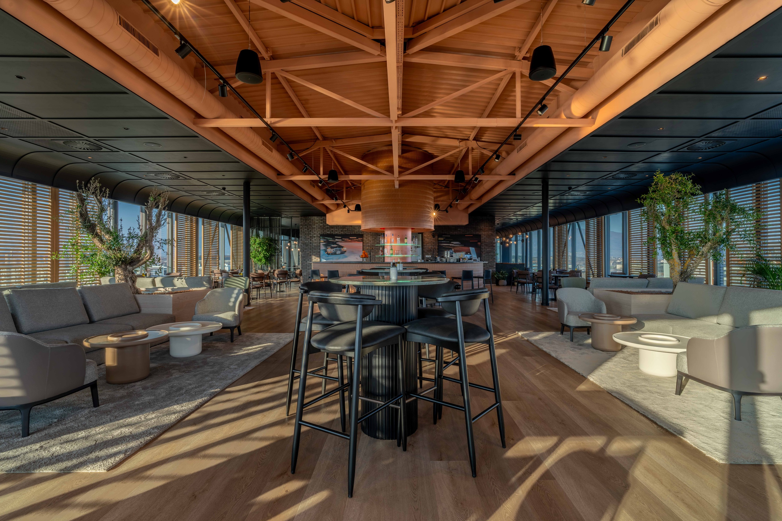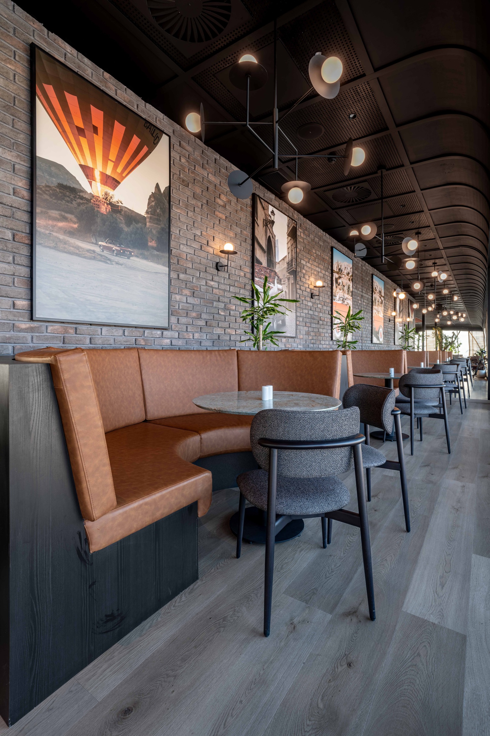Отворениот внатрешен простор овозможува лесна флуидност во движењето. Средишниот дел е истакнат со големиот кружен пулт во контрастна боја во однос на останатиот простор и овозможува слободно движење и седење околу наоколу. Над него дополнително се истакнува плафонот каде комплетно е видлива кровната конструкција на објектот кој додава на уникатност на дизајнот.