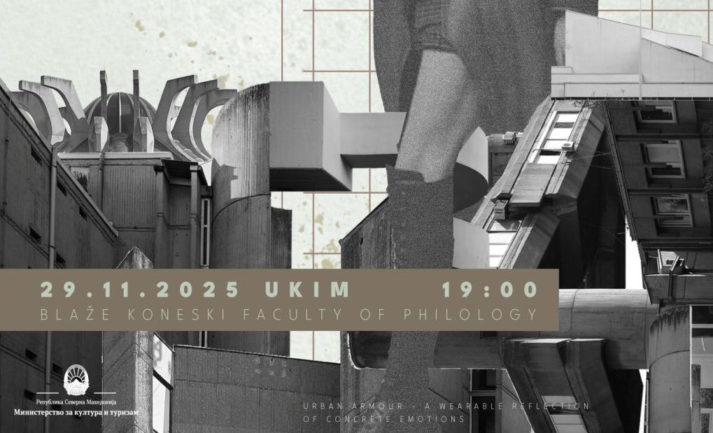 Татјана Гиновска, дипломиран архитект со над 12 години искуство во проектирање и визуелно обликување, го претставува проектот Urban Armour – Урбан Штит, кој ја истражува синергијата помеѓу урбаната архитектура, брутализмот и индивидуалниот стил. Проектот ја претвора скопската урбана архитектура во инспирација за облека, сценографија и визуелни приказни, создавајќи мост помеѓу архитектонските форми и модната експресија.
