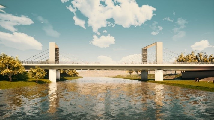 Проектот на мостот е направен во 2020 год. Изведбата е започната во јули 2022 година, а завршена во јануари 2024 година.