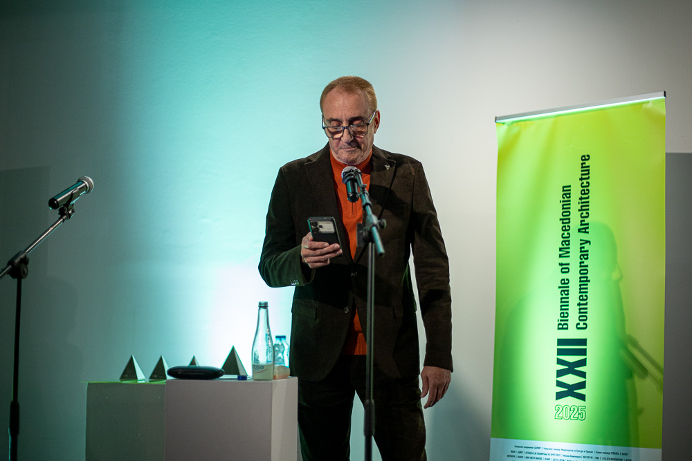 Вчера (20.10.25) во Музејот на современа уметност-Скопје, се случи церемонијалното доделување награди во склоп на официјалното затворање на XXII Биенале на македонската современа архитектура.