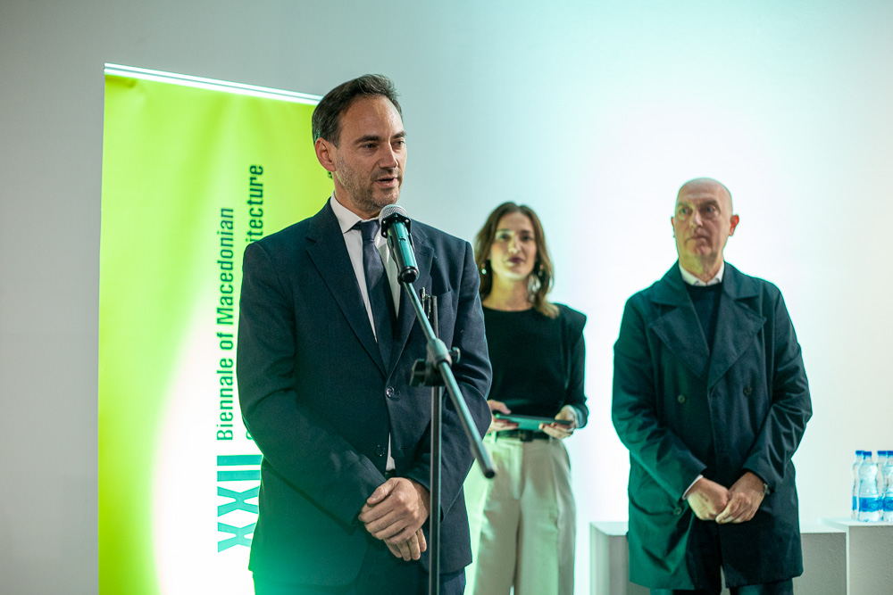 Се обрати и претседателот на Асоцијација на архитекти на Македонија – Валентино Константиновски кој посака добредојде на присутните на официјалното затворање на овогодинешното XXII Биенале на современата македонска архитектура БИМАС 2025: „По завршување на Биеналето треба да сме збогатени со знаење, дополнително инспирирани, но во исто време и замислени, дали се движиме по правиот пат, поточно бара еден вид на сопствено преиспитување.“