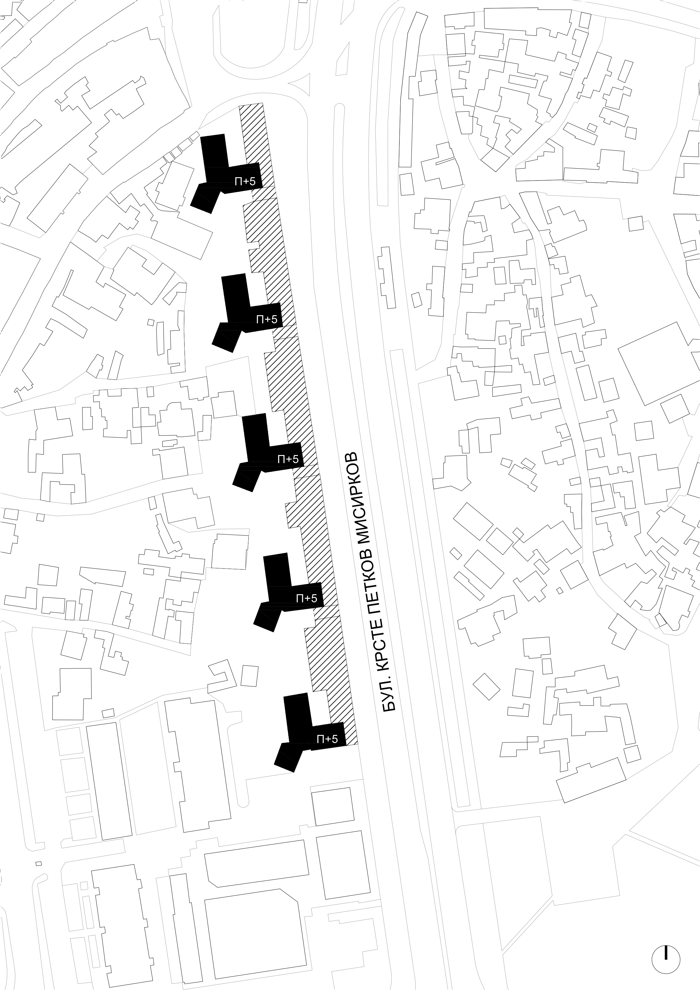 Објектите се поставени како слободностоечки волумени во низа и секој волумен има карактеристична основа составена од три испакнати краци, со што се разградува монолитноста и се обезбедува подобра ориентација, осончување и визури. Ваквата диспозиција на трикраките волумени, создава ритам на повторување и празнини помеѓу објектите, што овозможува проветрување и визуелни коридори, а воедно се избегнува меѓусебното засенчување.