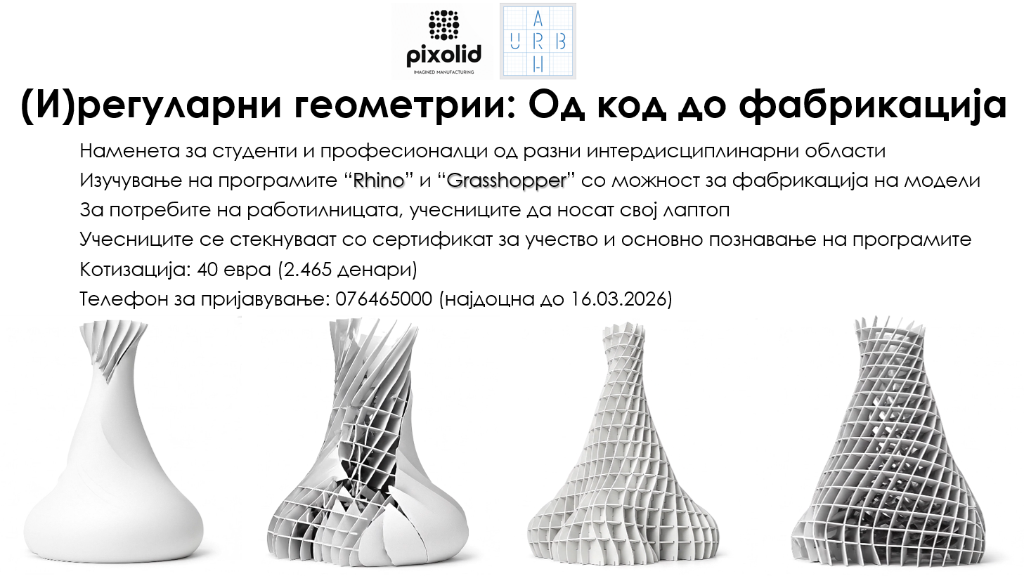 (И)регуларни геометрии: Од код до фабрикација / параметричка архитектура / Работилница
