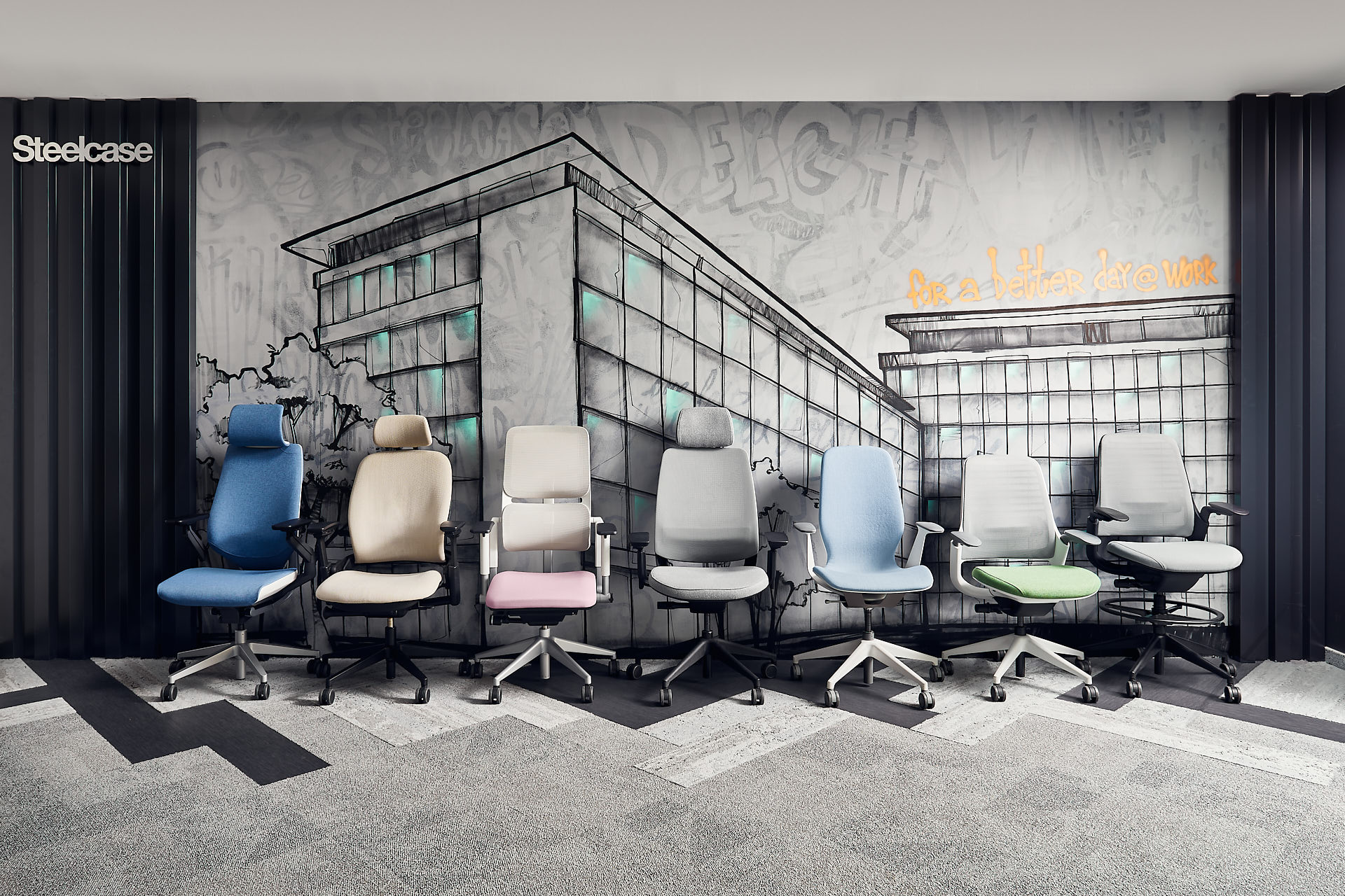 - Steelcase: лобален лидер во областа на канцелариски мебел и workplace иновации, препознатлив по истражувачки пристап и развој на напредни работни средини.