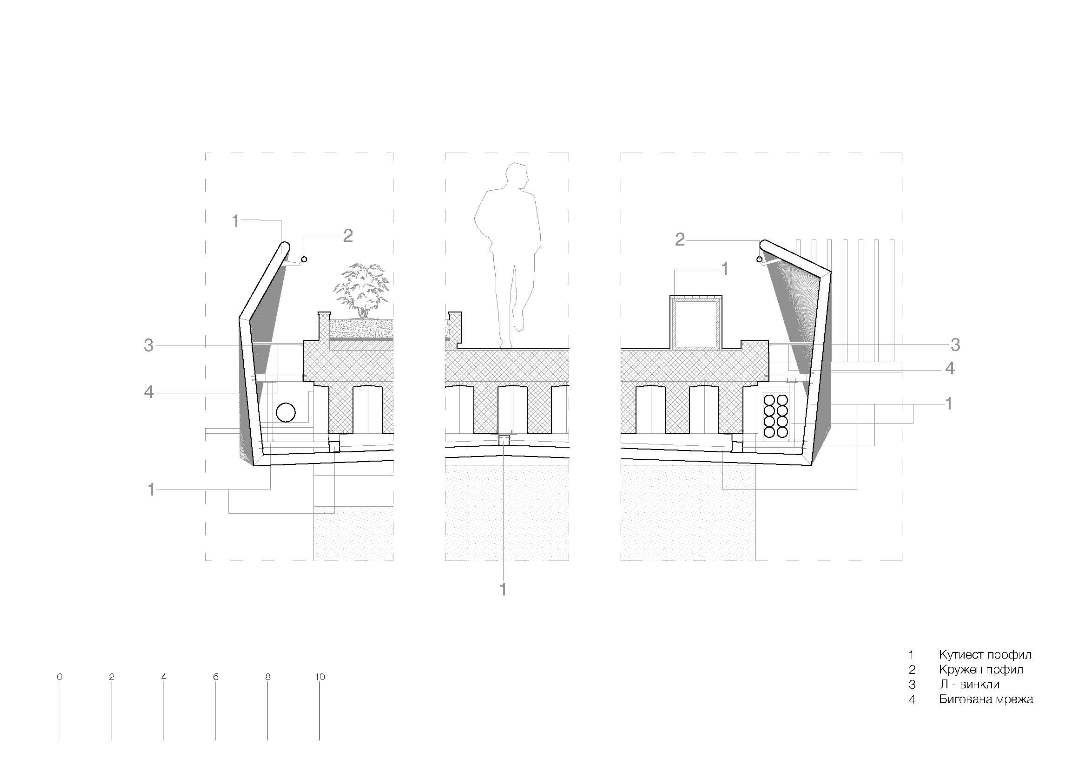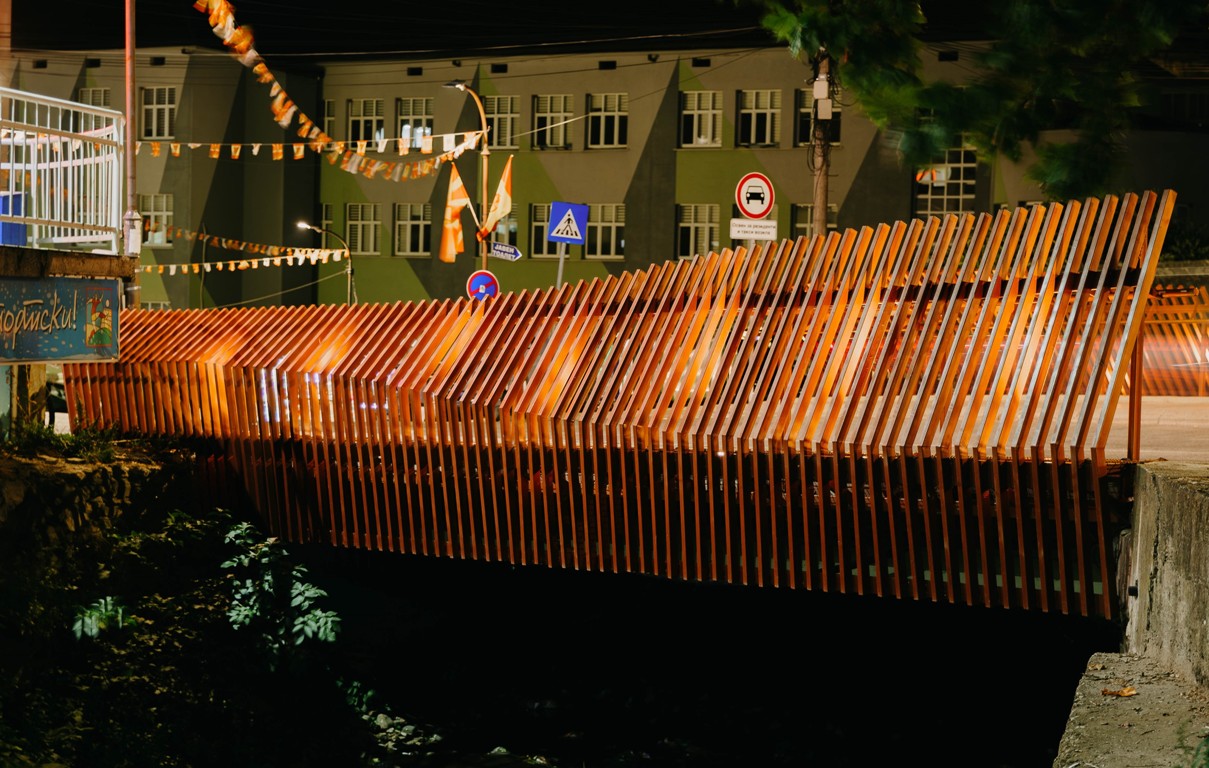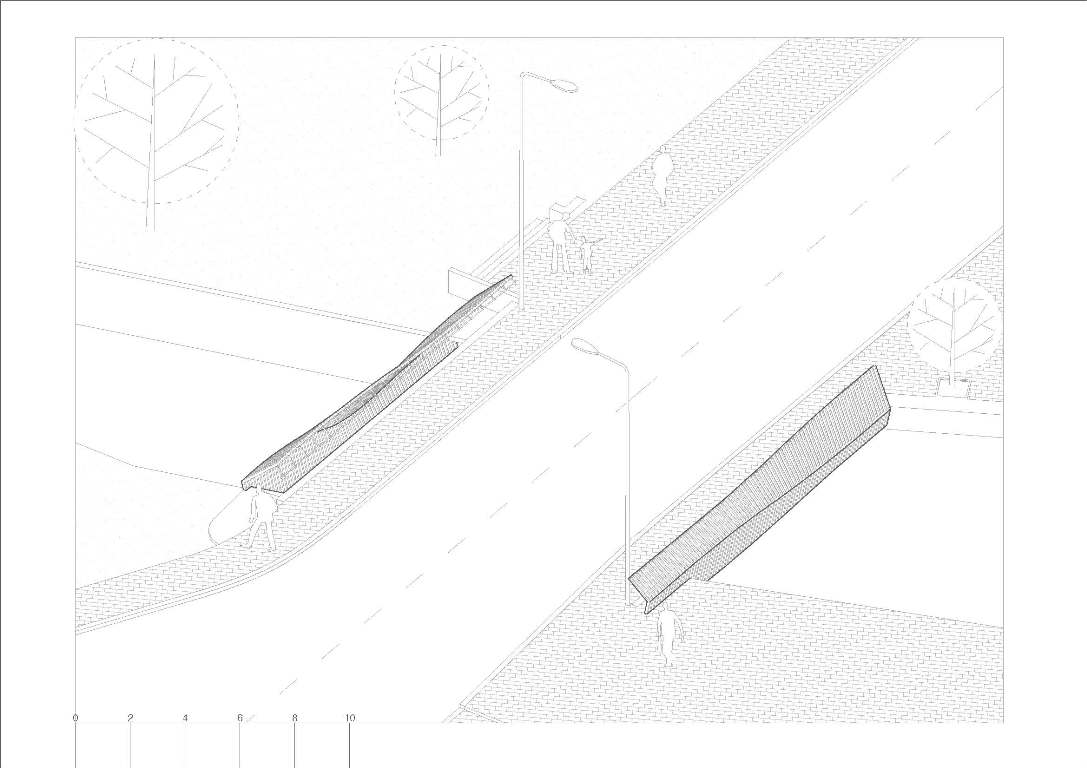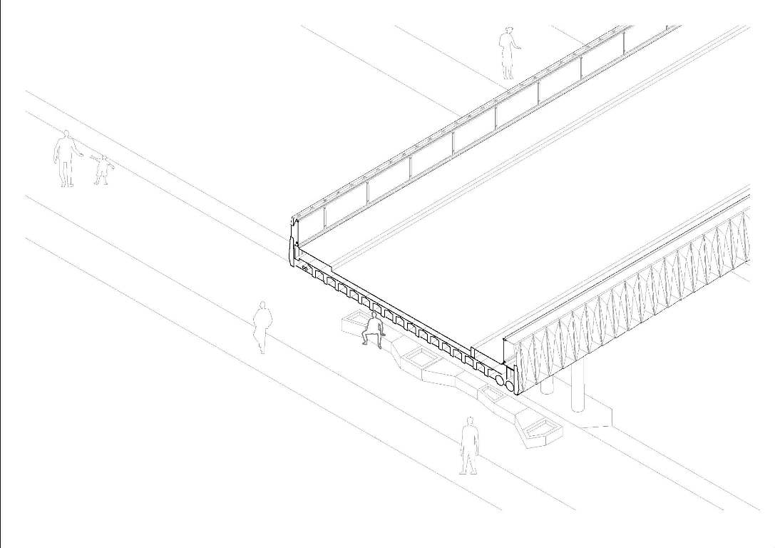 Градечкиот мост добива нова улога во урбаниот пејзаж преку интервенција што ја нагласува неговата транспарентност и поврзаност со паркот во градот. Формата е строга, но и разиграна – создава рамнотежа помеѓу стабилност и движење. Таа станува рамка за секојдневните сцени – наративи од животот на луѓето.