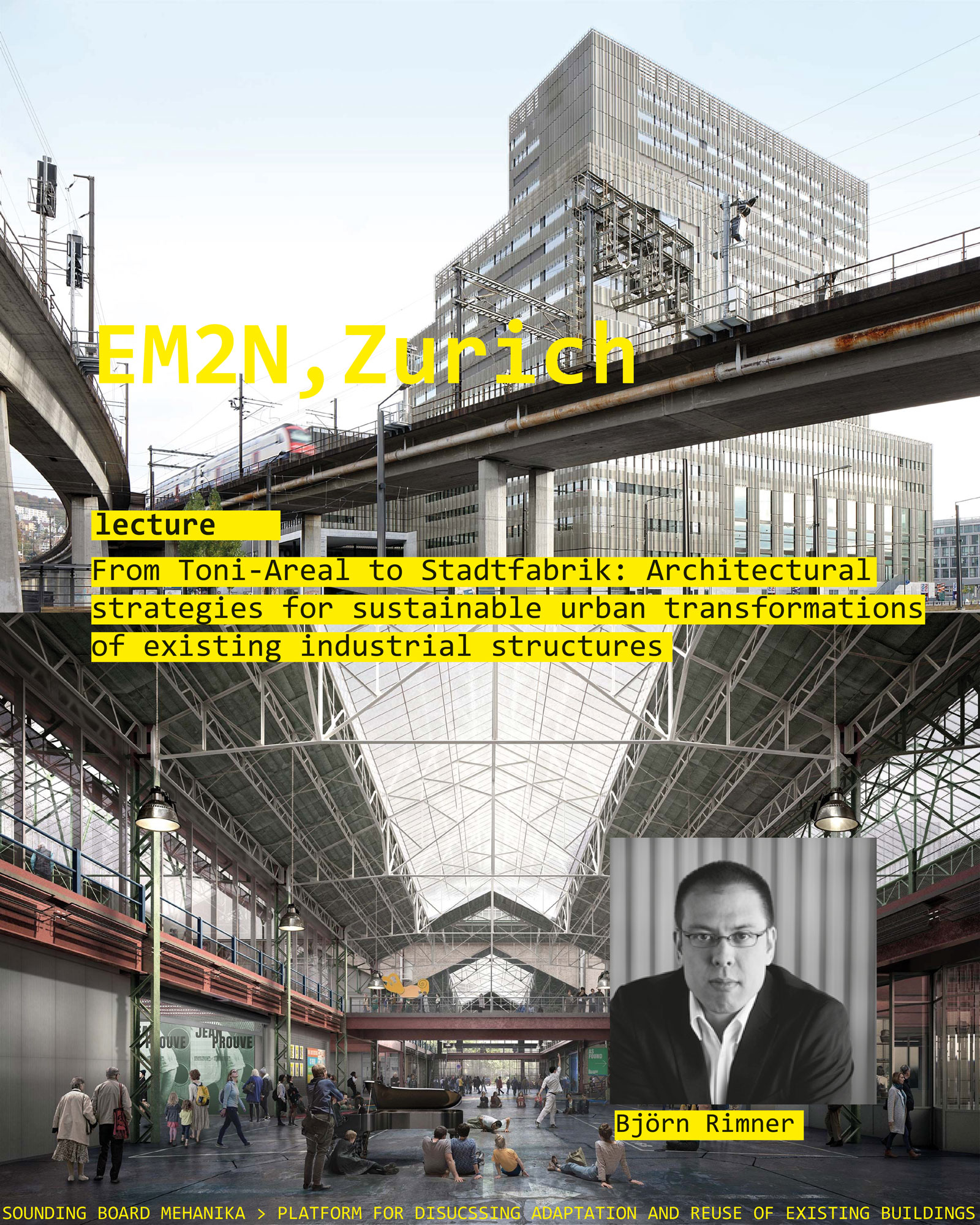 „From Toni-Areal to Stadtfabrik“ – Бјорн Римнер, партнер во „EM2N Architekten“, Цирих, ќе презентира за процесите при адаптација и реупотреба на големи комплекси како во примерот на „Toni-Areal“ во Цирих.