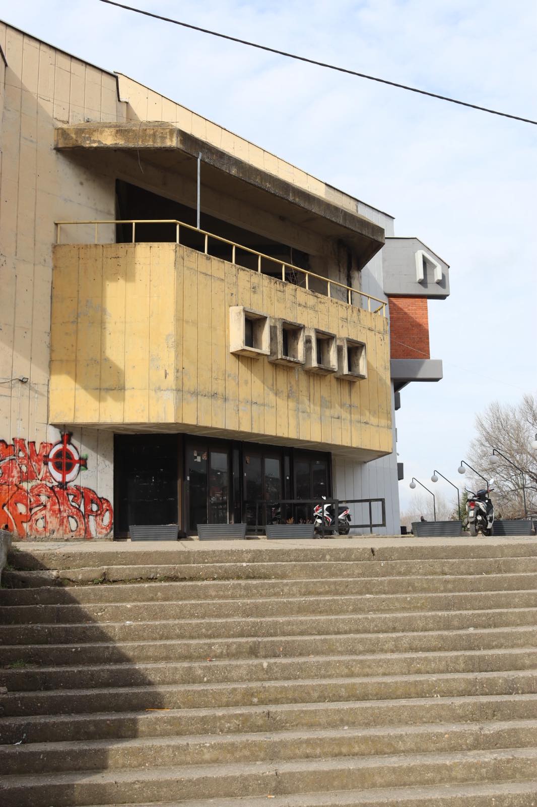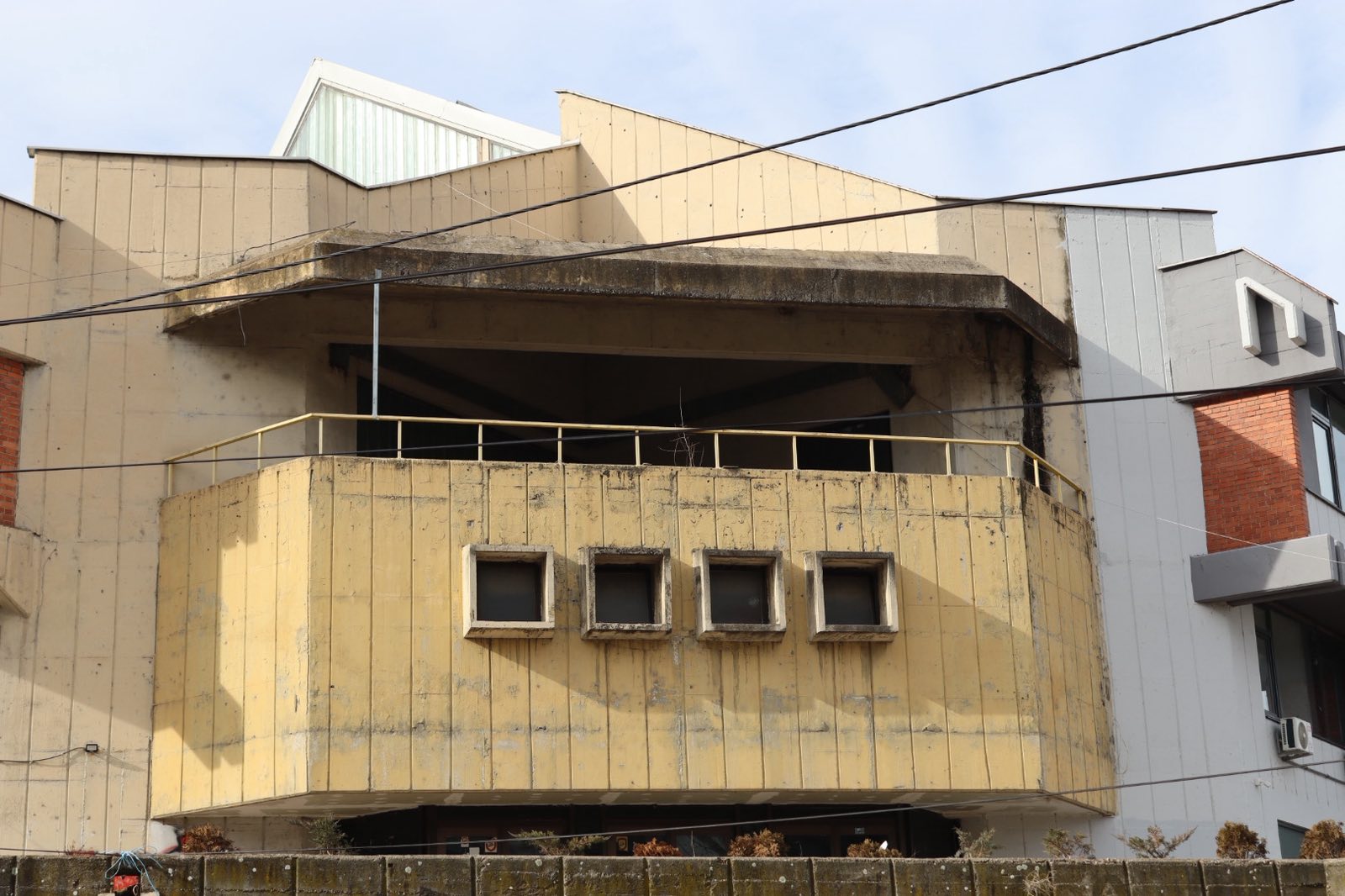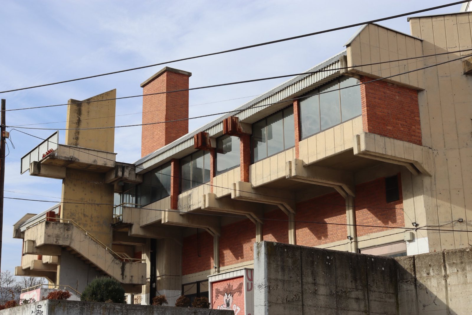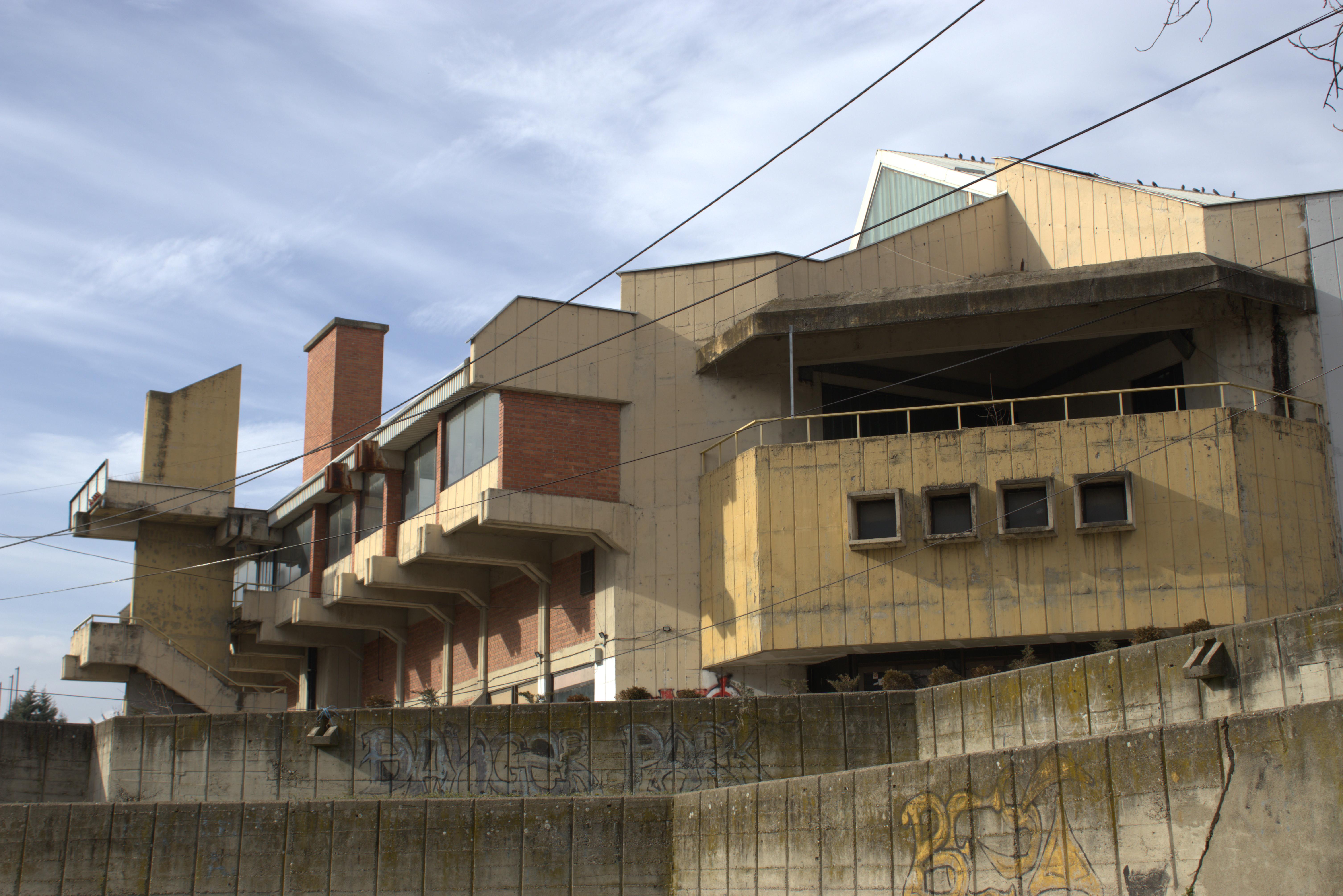 Она што е поалармантно е штетата направена од несоодветни интервенции, особено поправки и додавките во форма на натстрешници во вид на импровизирани метални конструкции кои не само што го нарушуваат личниот идентитет на објектот, туку и го деградираат неговиот визуелен израз бришејќи го авторскиот потпис на архитектот и духот на времето во кое е создаден.