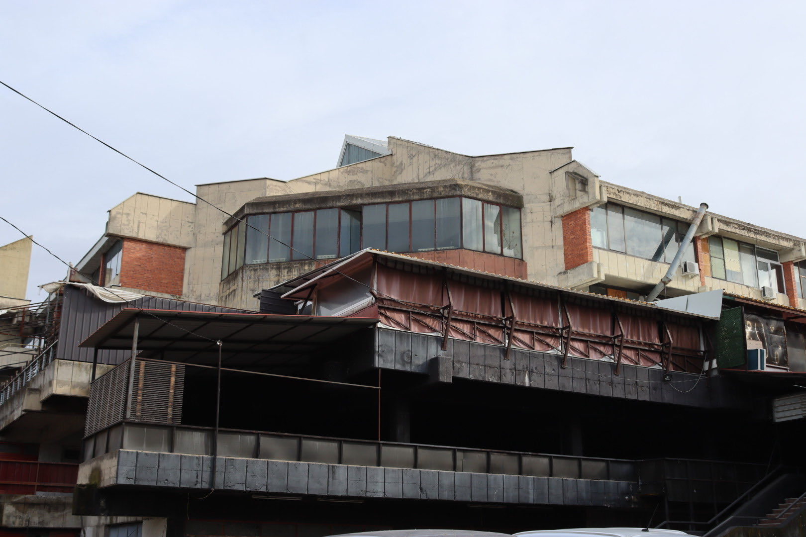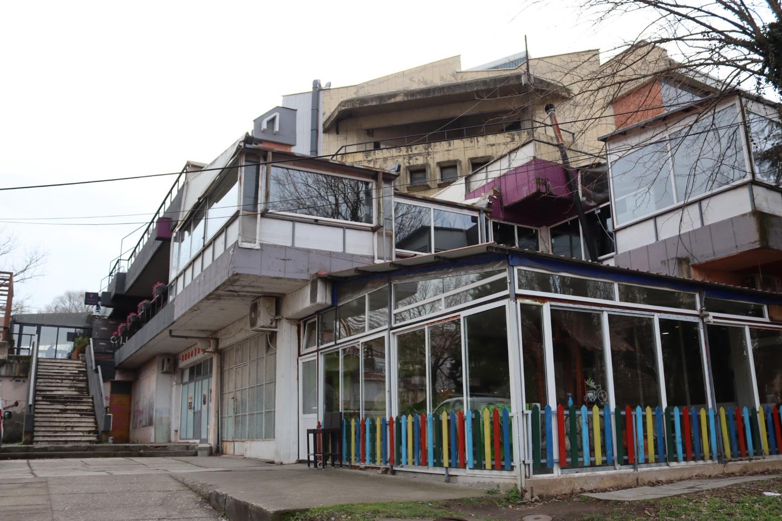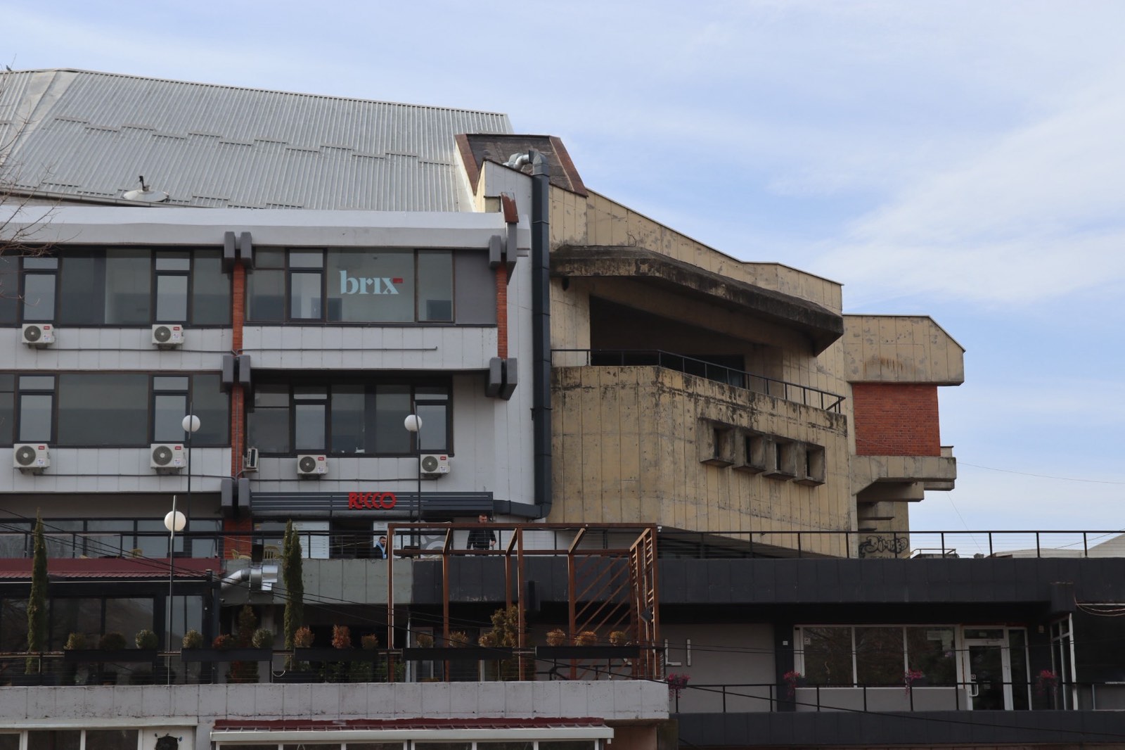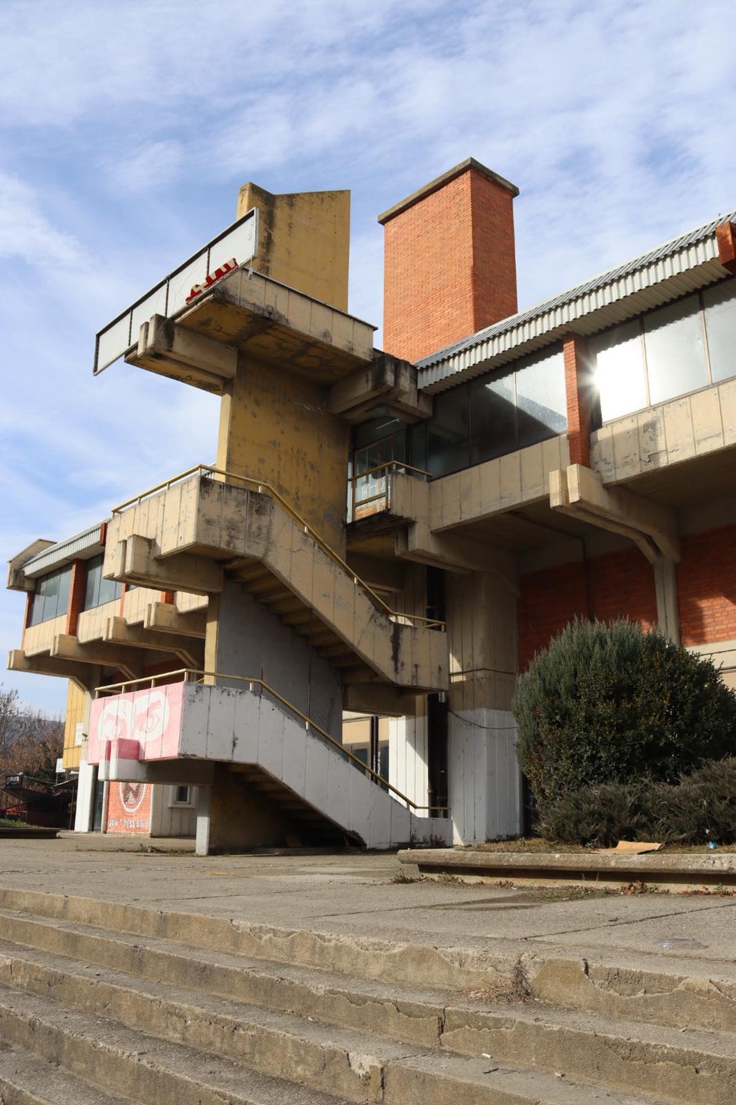 Она што е поалармантно е штетата направена од несоодветни интервенции, особено поправки и додавките во форма на натстрешници во вид на импровизирани метални конструкции кои не само што го нарушуваат личниот идентитет на објектот, туку и го деградираат неговиот визуелен израз бришејќи го авторскиот потпис на архитектот и духот на времето во кое е создаден.